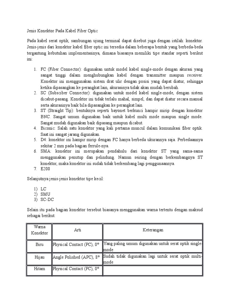 Jenis Konektor Fiber Optic Belajar Komputer